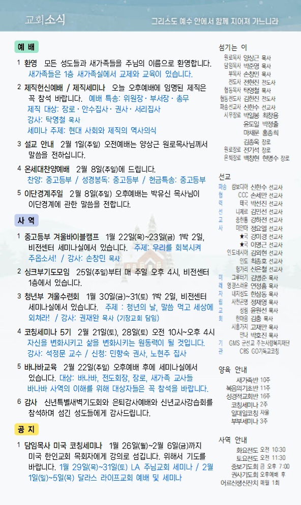 1월 18일 교회소식