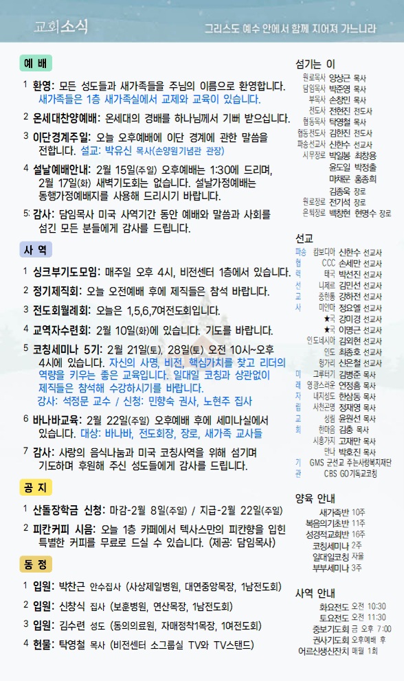 2월 8일 교회소식